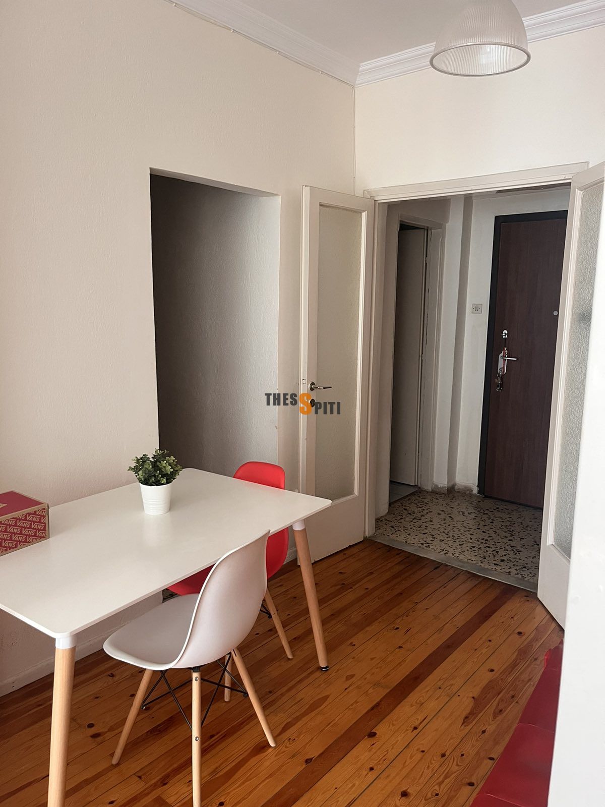 Ενοικιάζεται διαμέρισμα 55 τ.μ. στο κέντρο της Θεσσαλονίκης (ΑΓΙΑΣ ΣΟΦΙΑΣ - ΦΙΛΙΠΠΟΥ), κοντά στο Πανεπιστήμιο στον 4ο όροφο. Πλήρως ανακαινισμένο. Αποτελείται από 1 δωμάτιο, μια σαλοτραπεζαρία που χωρίζεται με τζαμωτή σε 2 χώρους, χολ, κουζίνα και τουαλέτα με κανονική ντουζιέρα. Πόρτα ασφαλείας, κουφώματα pvc, πατώματα ξύλινα, μπροστινό μπαλκόνι, ατομικό φυσικό αέριο. Ιδανικό για 1 ή και 2 φοιτητές.